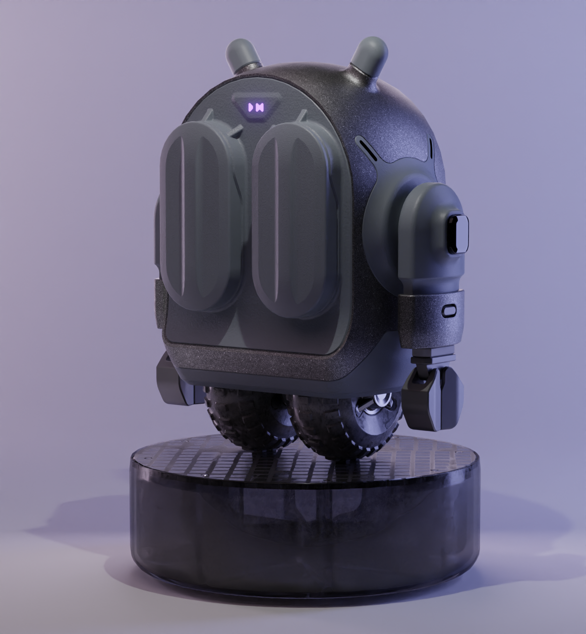 As a part of a larger concept art project, I wanted to create a robot helper character with with an expressive face and ability to move around.